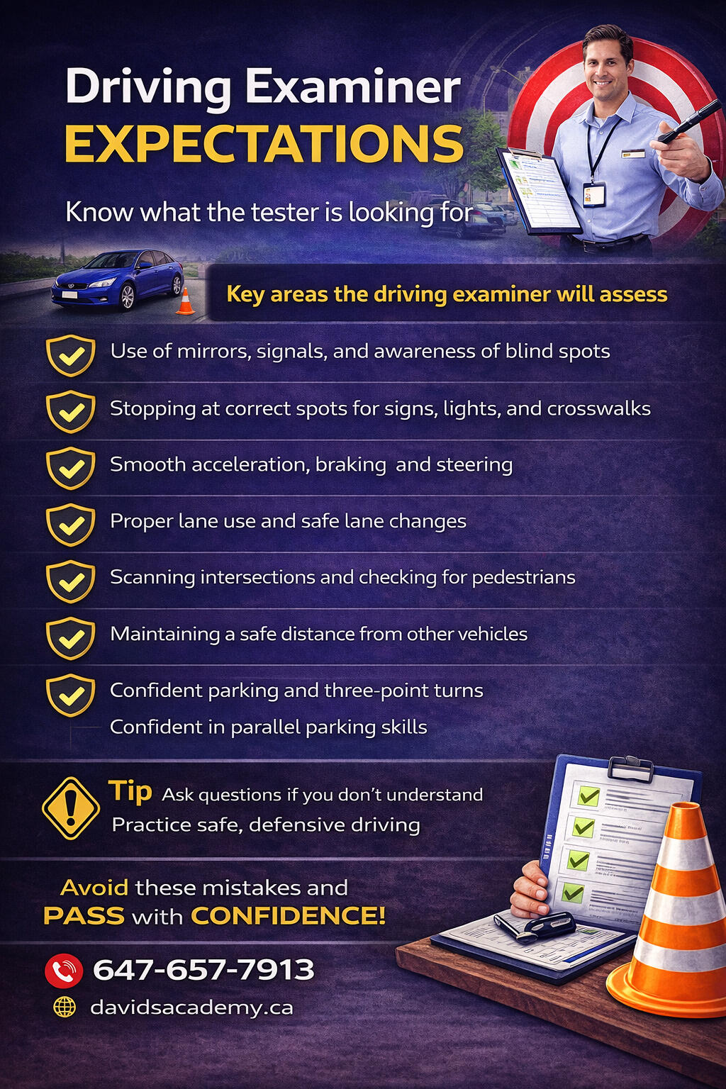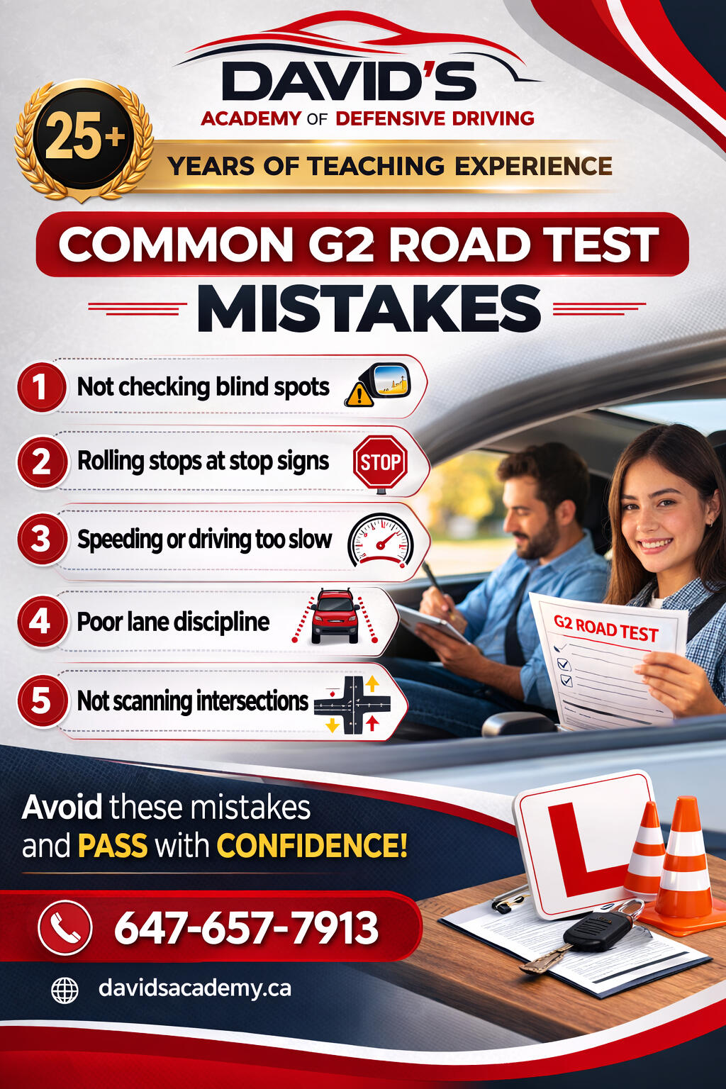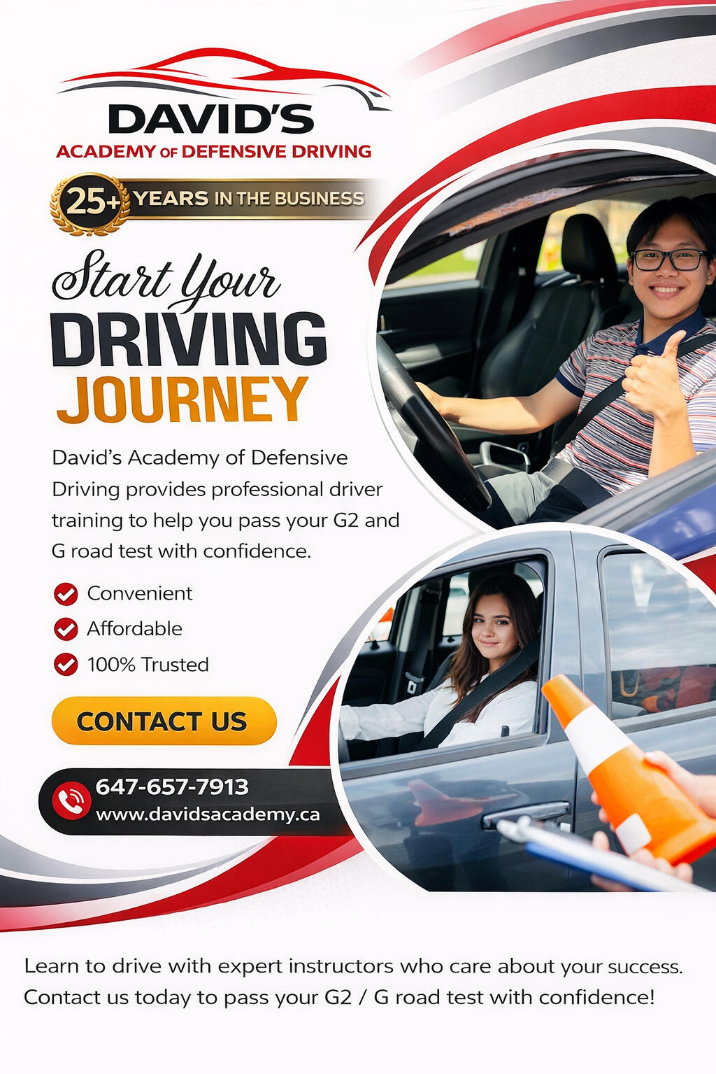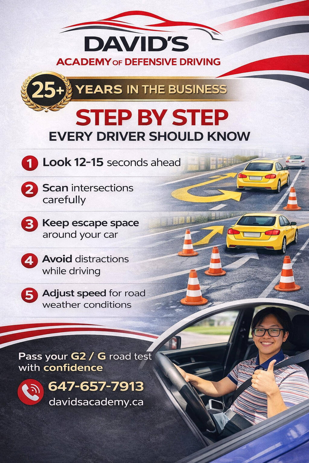 David’s Academy of Defensive Driving provides professional G2 and G road test preparation with patient instruction for new drivers, nervous drivers, and international drivers.